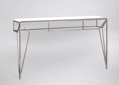 Prisme console is inspired by the Art Deco design furniture of the 30s’. The wrought iron is structural, the texture is hot hammered while forging. Following the Art Deco style and on request, the top can be in lacquered parchment with an empire gold wax finish. This piece will offer style and light to your space.