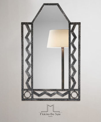 Inspired from the 1930s geometric patterns, the “Chevron” mirror will definitely be the Art Deco piece of your interior space. It is a “tour de force” of textures and assemblies. Here, shaped into a set of triangles and parallels, looking like a suspended diamond. Hot hammered wrought iron, the two textures are converging to create this majestic mirror. Like all our products, the Chevron mirror is manufactured in our Mobilier De Style ® workshop. Here presented with finish 1 "Brushed wrought iron". Each mirror is coming with a wall mounting system.