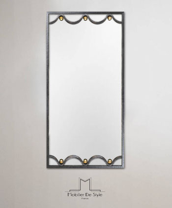 This forged and hand-assembled mirror shows the finish quality that is our specialty at "Mobilier De Style" ® collection, whose assemblies are worked to perfection. The design is accentuated, very finely, with polished brass beads, fitting on the textured frame. The elegant line of this mirror will enhance your living room or Hall with a matching console. Here presented with finish 1: "Brushed wrought iron", the frame can contrast even more with the beads, thanks to finish 4: "Black painted wrought iron". Each mirror is supplied with a wall mounting system.
