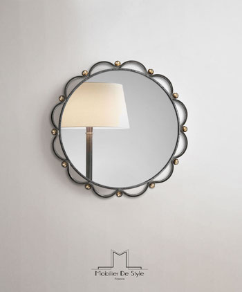 The Ruban mirror is a major piece due to its aesthetic refinement. A wrought iron wave, hot textured, is ornamented with polished beads to form a gigantic piece of jewelry. The Ruban mirror is inspired by the Art Deco period. Here presented with finish 1: "Brushed wrought iron", other finishes are possible to enhance your interior. Each mirror is coming with a wall mounting system.